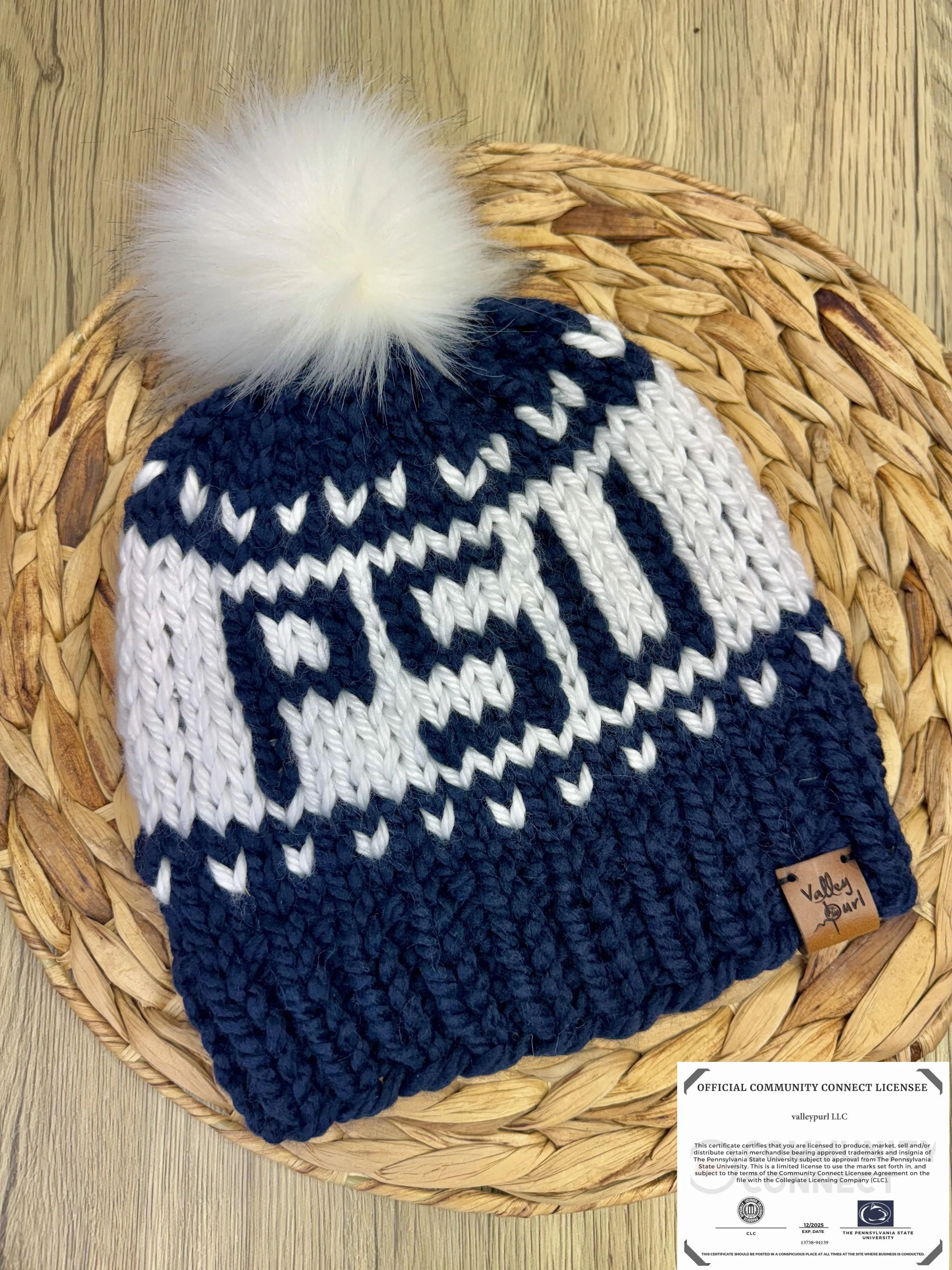 PSU COLLECTION Categories: All LUXURY BEANIES BEANIES PSU COLLECTION LUXURY HEADBANDS/EARWARMERS HEADBANDS/EARWARMERS SCARVES & COWLS SEASONAL BEANIES PET All LUXURY BEANIES BEANIES PSU COLLECTION LUXURY HEADBANDS/EARWARMERS HEADBANDS/EARWARMERS SCARVES & COWLS SEASONAL BEANIES PET Hand-Knitted Penn State Collection – Custom Penn State Winter Wear, Nittany Lions, PSU from $35.00 Hand-Knitted PSU Beanie – Custom Penn State Winter Hat with Faux Fur Pom, Nittany Lions from $32.00